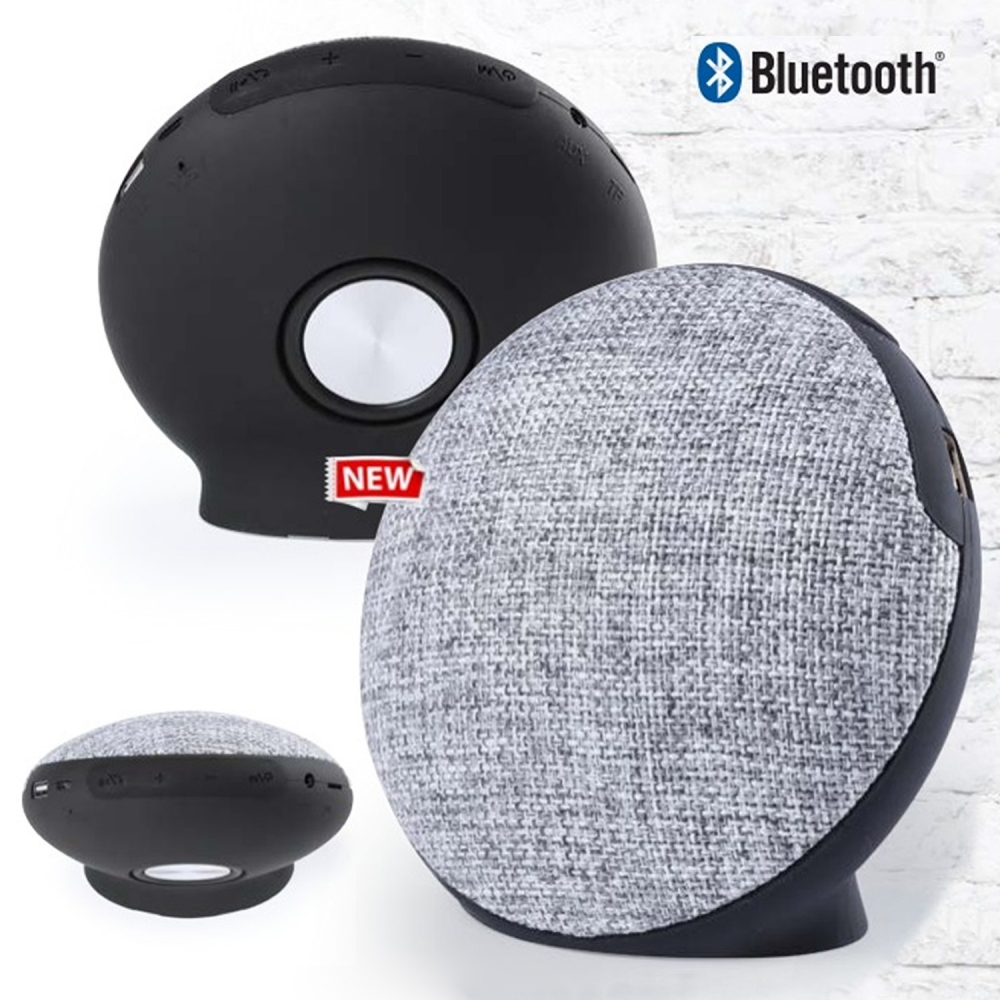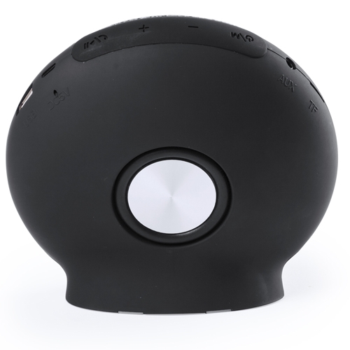 Altavoz de conexión bluetooth. En tejido de poliéster de acabado bicolor y con cuerpo en suave acabado goma. Ofrece 3W de potencia, tiene función de manos libres, una ranura para tarjetas mini SD de hasta 32 GB de capacidad y entrada auxiliar de línea mediante conexión jack de 3,5mm. Compatible con iOS y Android, incluye cable de carga mini USB, cable auxiliar jack de 3,5mm y viene presentado en atractiva caja de diseño. Con soportes de goma antideslizantes en la base.