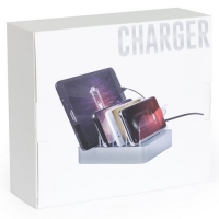 Estación de carga USB con e 6.800 mAh de capacidad de carga para alimentar simultáneamente hasta 4 dispositivos móviles. Con base anti deslizante y compartimentos individuales para cada dispositivo. Incluye cable de carga para enchufe de pared y viene presentado en atractiva caja de diseño.