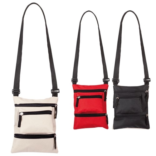 Bandolera todo terreno en resistente poliéster 600D de variados colores. Con 3 bolsillos de cierre de cremallera y cinta en tirador para fácil apertura. Cinta para hombro ajustable.