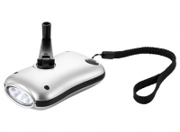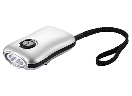 Linterna 3 LED con dínamo de manivela. Con huincha para colgar.