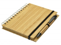 Cuaderno Ecológico con Tapas Duras de madera de Bamboo, 70 hojas interiores lineadas de papel kraft y anillado metalico doble cero. Incluye Bolígrafo Ecológico de madera de Bamboo con detalles negros.