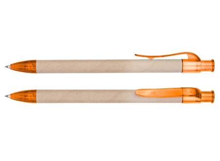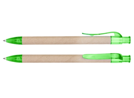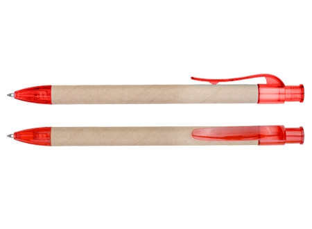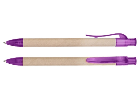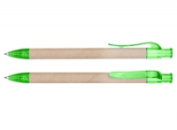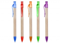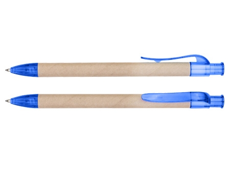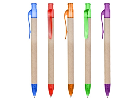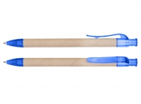 Bolígrafo Ecológico "Planet" de cartón reciclado, con terminales de color traslúcido. Escritura azul.