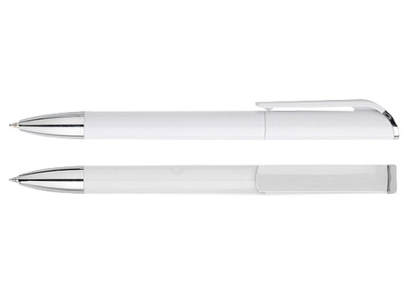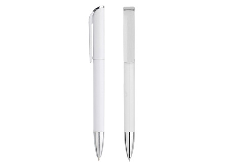 Bolígrafo blanco "Angel", con clip ancho plano, especial para imprimir sobre él. Escritura azul.