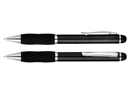 Bolígrafo plástico "Qasar" con cuerpo de color metalizado. Escritura azul.