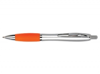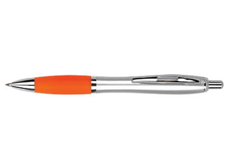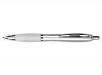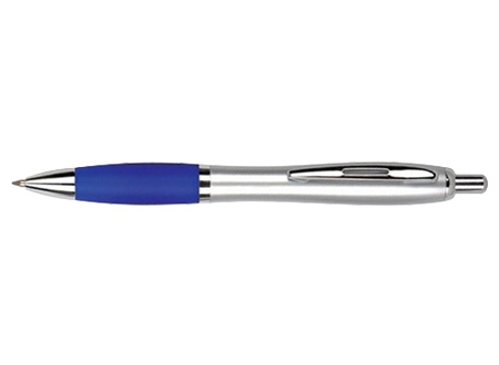 Bolígrafo plástico plateado con goma de color, modelo "Wind Satin". Escritura Azul. El Bolígrafo más famoso del mundo.