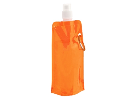 Botella de Plástico PET, con Mosquetón para colgar. Producto libre de BPA. Liviana y flexible, ideal para llevar a cualquier lugar, ya que vacía se puede plegar para transportar incluso dentro del bolsillo.