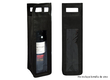 Porta-Botella de vino, para 1 unidad, en tela no tejida (TNT) de 80g/m2, con ventana frontal de PVC clear.