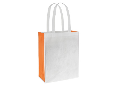 Tamaño: 32 x 40 x 15 cm Colores: Blanco/Azulino (02), Blanco/Rojo (03), Blanco/Naranjo (04), Blanco/Verde (06), Blanco/Gris (07), Blanco/Negro (08), Blanco/Verde Claro (15). Material: Tela TNT elaborada con polipropileno (PP), no tejido.