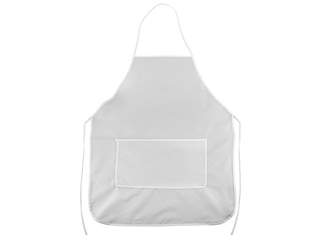 Delantal-Pechera de Cocina en tela Poliéster 210D/PU y borde costurado en tela ecológica PET nonwoven 80g. Incluye bolsillo delantero grande. Ideal para Sublimación. Producto Lavable.