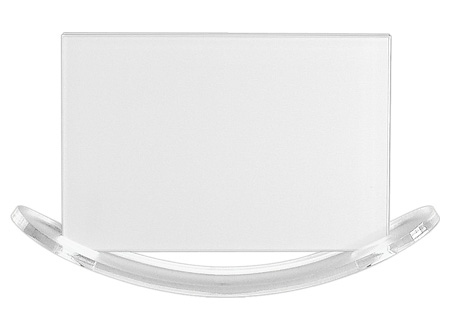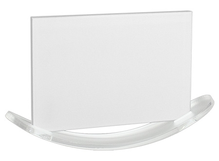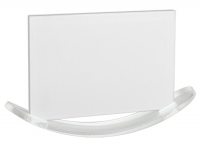 Porta-Retrato balancín para Sublimación. Base curva Acrílico frozen. Porta-Foto de Vidrio de 15.3 x 10.2 x 0.3 cm. Presentación en caja de Cartón blanco.