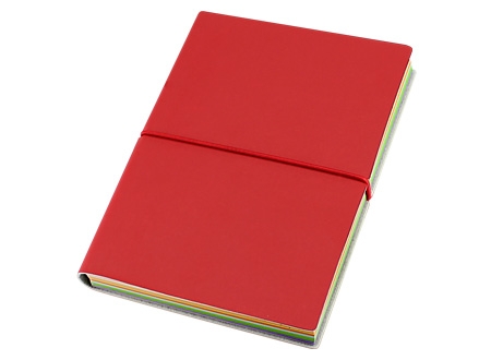 Libreta "High Class" con cubierta de PU color. Interior 144 hojas lisas 80g/m2 con 9 colores diferentes.