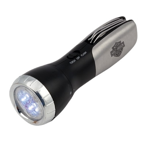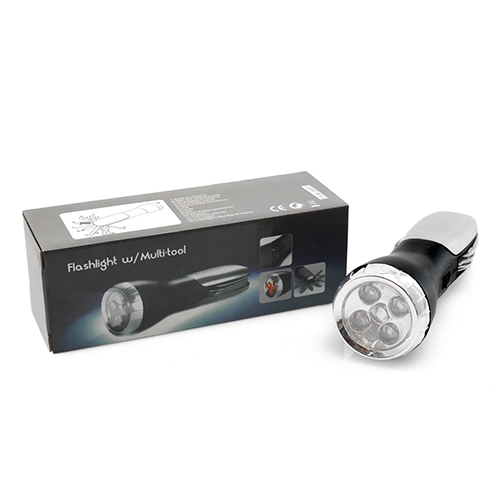 Multiherramienta con resistente de acabado anti deslizante en color metalizado. Con 12 funciones y linterna de 4 ledes integrada. Incluye cabezales destornilladores, navajas, llaves, tijeras y abridores. Presentada en caja individual. Pila 1xAAA no incluida.
