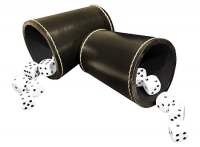 Set de 2 cachos de PU negro, presentados en bolsa. Incluye 10 dados blancos (5 dados por cada cacho).