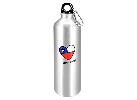 Vamos chilenos!!! A alentar a la roja. Botella deportiva de Aluminio con gráfica "Vamos Chile". Incluye tapa rosca y mosquetón para colgar. IMPORTANTE No congelar