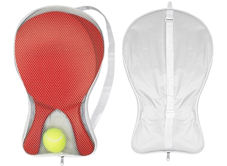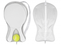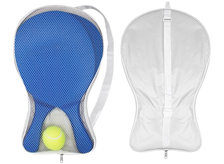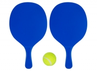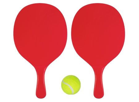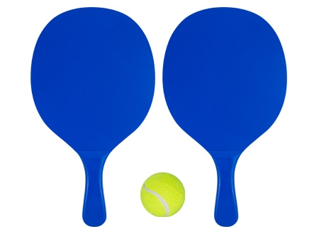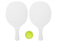 Set de Paletas de Playa de MDF esmaltado de 12mm. de espesor, modelo "Premium". Incluye bolso de tela poliéster blanco con frente malla y cinta para colgar + pelota de tenis amarilla. Cada paleta viene dentro de bolsa de polietileno.