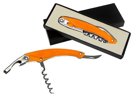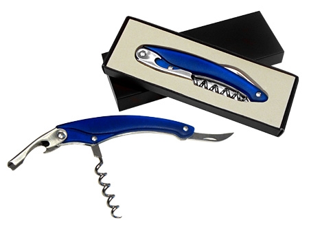 Descorchador - destapador - abresellos de Acero Inoxidable con Mango Ergonómico color Frozen. Presentación en caja negra laminada opaca.
