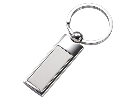Llavero Metálico Rectangular. Presentación en estuche laminado negro con cuna aterciopelada.