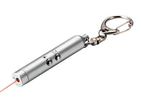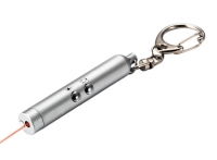Llavero-Linterna LED plástica color plata. Usa 3 pilas botón (incluidas).