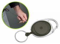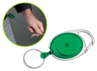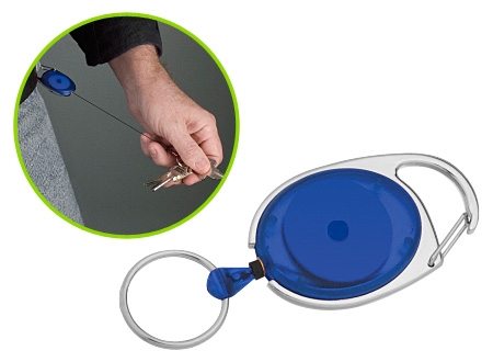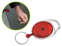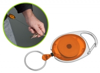 Llavero con Mosquetón y extensor retráctil, en color traslúcido.