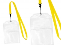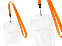 Lanyard "Fair" de polyester liso de 1.5 cm de ancho para sublimación, con terminal Porta-Credencial doble de PVC Clear, permite introducir 2 tarjetas informativas, una con los datos del evento o la compañía, y la otra con los datos personales del identificado.
