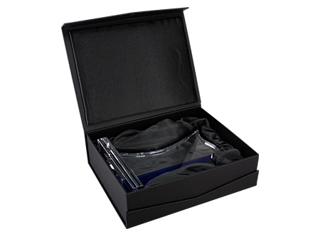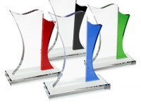 Deluxe Trofeo grande de Cristal modelo "Bauhaus" con aplicación de cristal-color. Presentación en caja de cartón forrado negro.