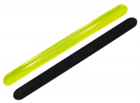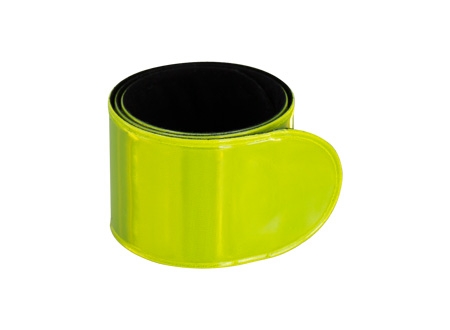 Banda Reflectante Retráctil, para uso nocturno. Reverso negro aterciopelado. Ideal para usar en muñeca, brazo y tobillo. Presentación en bolsita transparente de polipropileno con orificio para ganchera.