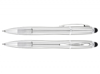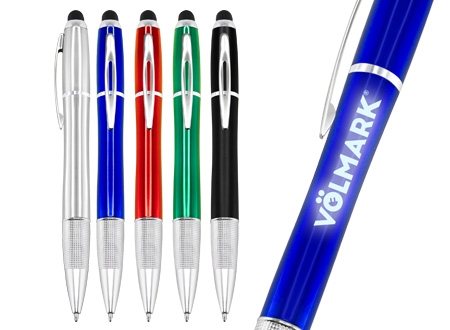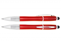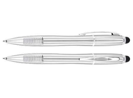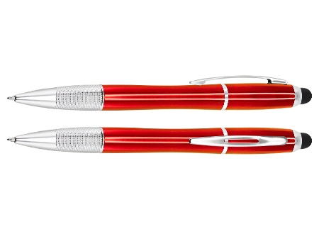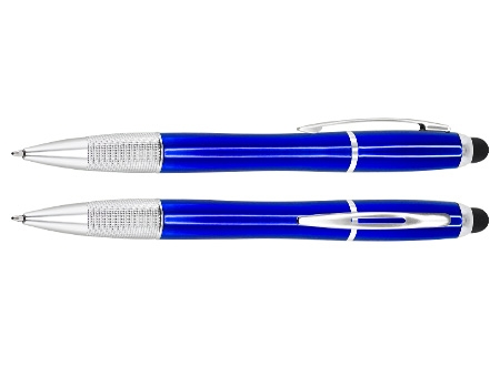 Bolígrafo plástico con puntero screen-touch al tono, modelo "NEON". Incluye luz LED al interior, para retroiluminar logo grabado sobre el cuerpo del bolígrafo. Escritura azul. NOTA IMPORTANTE Consulte y revise la ubicación de grabado láser del logo, ya que la luz LED ilumina una única posición dentro del bolígrafo. La longitud de iluminación LED es de 4 cm, exactamente sobre la posición indicada.