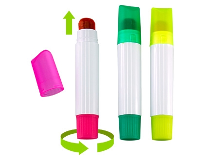 Set de 3 Destacadores de Cera, con dosificador, presentación en Estuche de Plástico transparente. No se secan.
