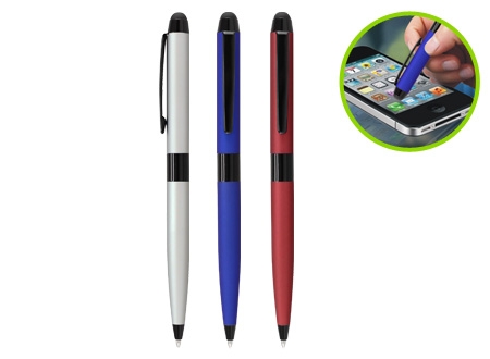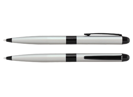 Bolígrafo Metálico modelo "Bauhaus", cuerpo satinado color mate, con goma posterior negra "Touch-Screen" para pantalla táctil. Escritura negra.