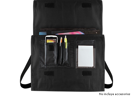 Maletín Portadocumentos de tela raquelada Polyester 600D modelo "Java", con solapa y bolsillo interior multi-accesorios.