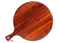 Amplia tabla redonda de madera sólida de ACACIA, con asa, ideal para cortar y servir Pizza. También para verduras y/o selección de quesos. Madera trabajada y acabada en máquina, de forma 100% regular, con superficies y cantos lisos y suaves, para una mayor higiene y comodidad al momento de cortar y servir alimentos. La Acacia, junto con la Teca, es considerada la mejor, más dura y más resistente madera para utilizar para cortes de alimentos - Densidad aprox. 770kg/m3. - Dureza 9.5 (test de Monnin)